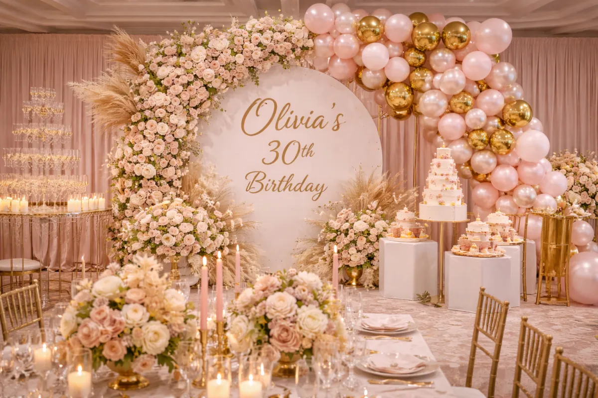 Let’s be honest guests notice the details. They may not remember the appetizers, but they’ll remember that jaw-dropping balloon garland that greeted them at the door or that custom LED sign glowing behind the champagne tower.